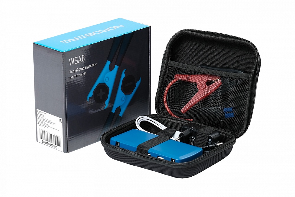 Пуско-зарядное портативное устройство NORDBERG WSA8 – компактная модель для запуска двигателя легковых автомобилей и мототехники с разрядившейся АКБ, а также зарядки аккумуляторных батарей.