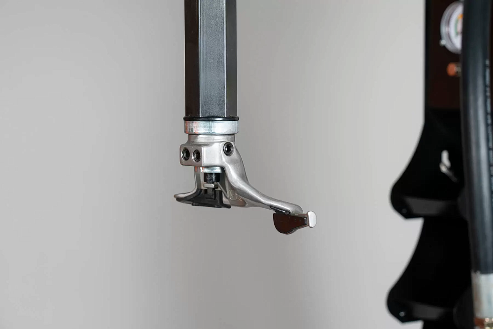 • Манометр контроля давления воздуха смонтирован на монтажной стойке. Накачка - нажатием ногой на педаль.