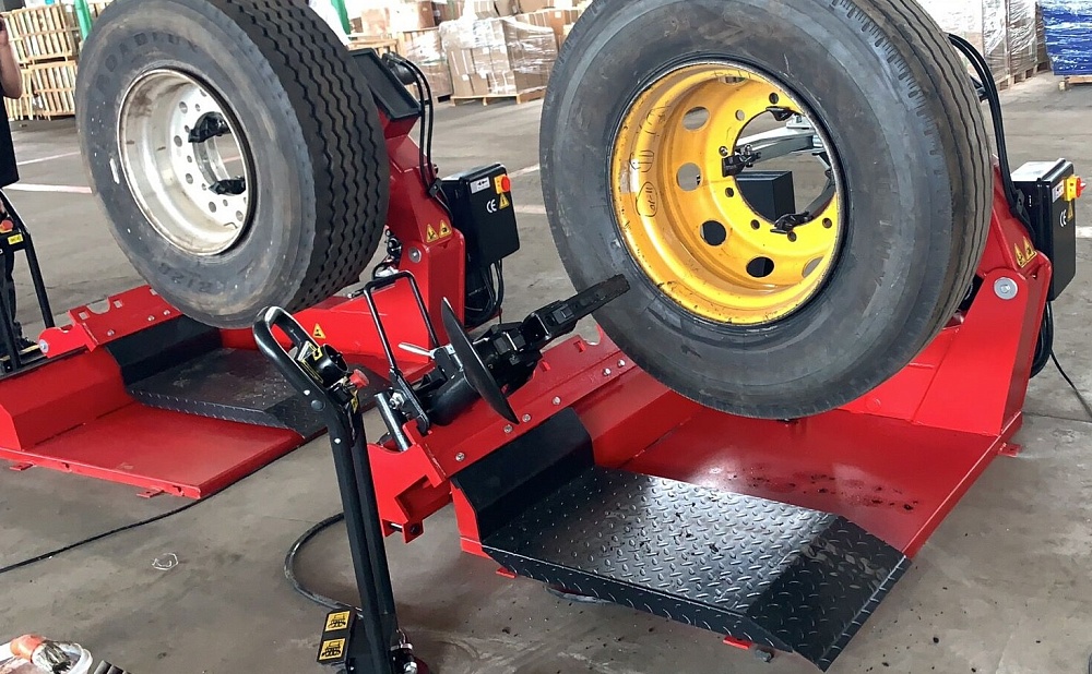 Универсальный шиномонтажный станок для монтажа/демонтажа бескамерных шин грузовиков, сельскохозяйственной техники и промышленного транспорта.