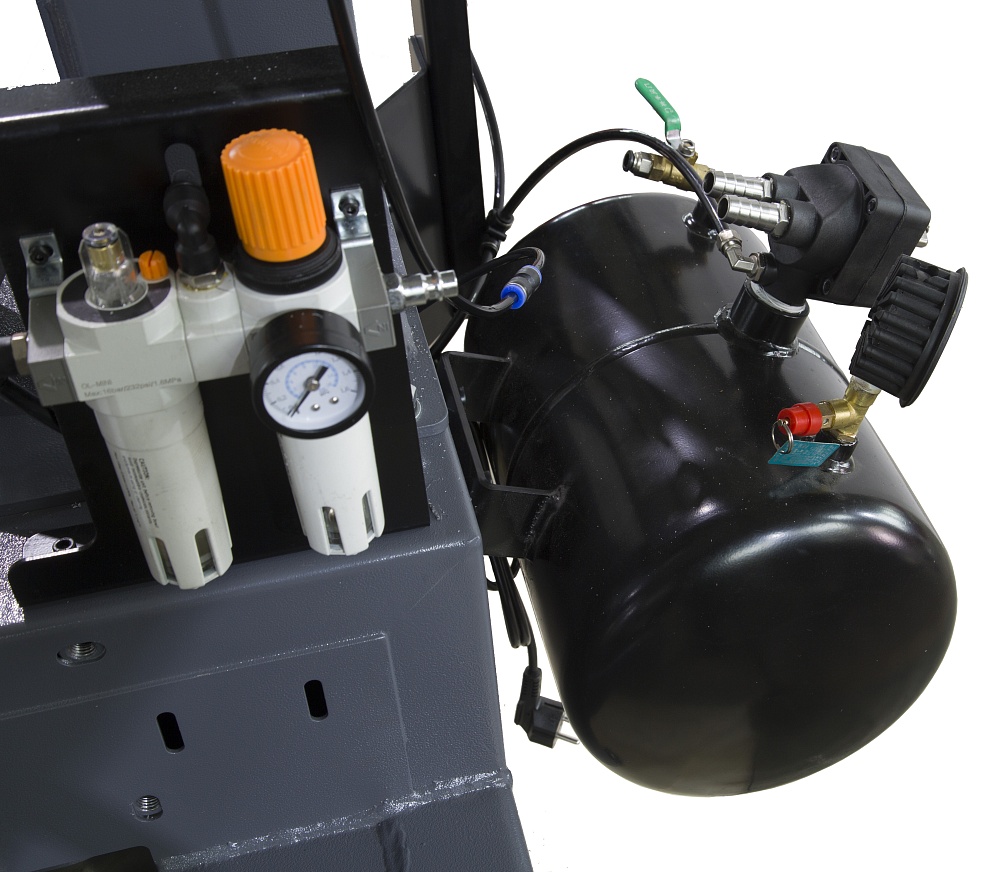 Станок оснащен емкостью для сжатого воздуха (бустер). Для быстрой посадки низкопрофильных шин на диск, достаточно дополнительно оснастить пистолетом для взрывной накачки - IT-GUN.