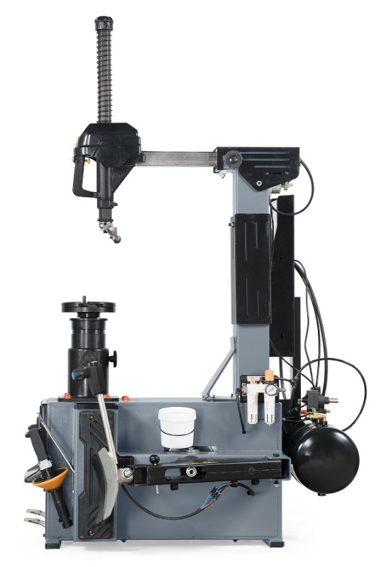 Полуавтоматический шиномонтажный станок для колес с дисками диаметром 10–24”. Мощный профессиональный полуавтомат с дополнительным ресивером в монтажной стойке и устройством взрывной накачки бескамерных шин через отверстия в зажимных лапках для лучшей посадки бескамерной шины на колесный диск.
