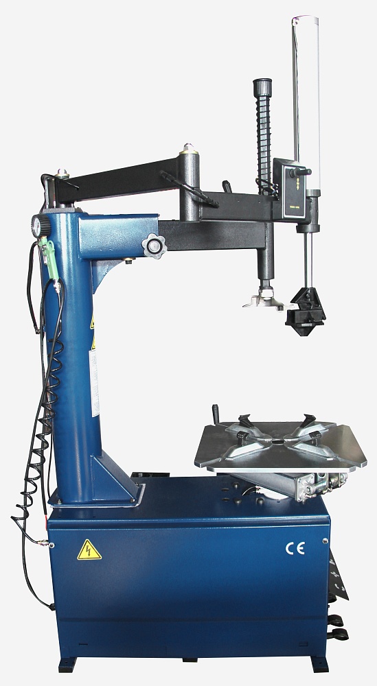 Полуавтоматический шиномонтажный станок с поворотной консолью для колес со стальными и алюминиевыми дисками.