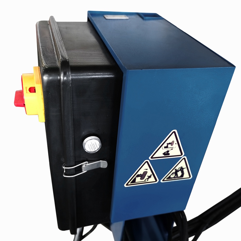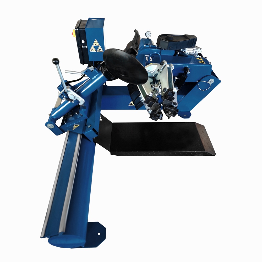 Аппарат оборудован зажимным устройством с гидравлическим приводом, переносной стойкой управления и консолью монтажного инструмента с гидравлическим приводом. Подвижная платформа для колеса позволяет быстро перемещать монтажную консоль к внутреннему или внешнему борту шины.