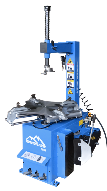 Полуавтоматический шиномонтажный станок Trommelberg 1805B для обслуживания колес со стальными / алюминиевыми дисками наиболее распространённых диаметров.