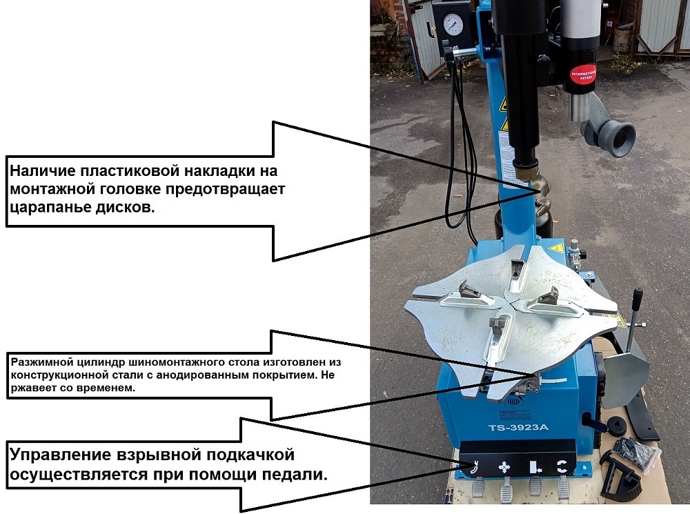 Усилие отжима увеличено до 2500кг, что дает возможность работать с самыми жесткими покрышками. Увеличивается скорость работы оператора.