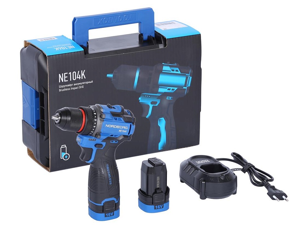 Шуруповерт аккумуляторный макс.диам. сверла 10 мм, 16 В, 60 Нм с 2 аккумуляторами и зарядным уст-вом NORDBERG NE104K купить в Самаре цена ✅ - Все для СТО