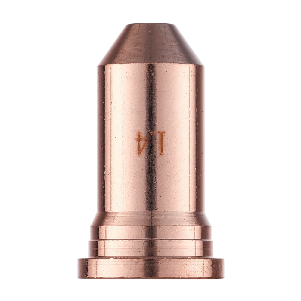Удлиненное сопло диаметром 1,4 мм для плазменного резака CP 101, CP 141, ACP 141, CP 151. Образовывает дежурную дугу и формирует поток плазмообразующего газа, который выходит из сопла на разрезаемое изделие. Чем толще диаметр разрезаемого металла, тем больше должен быть диаметр сопла. Чем меньше диаметр разрезаемого металла, тем диаметр может быть меньше.