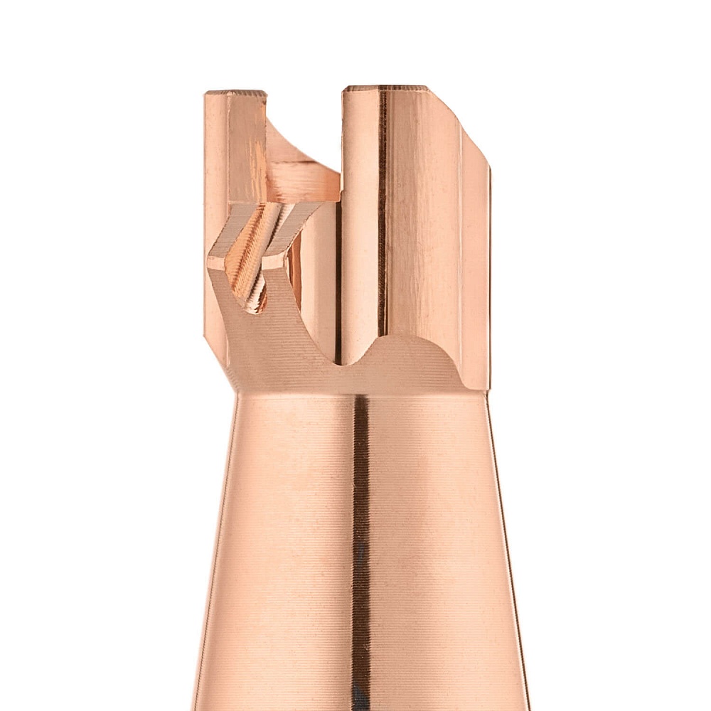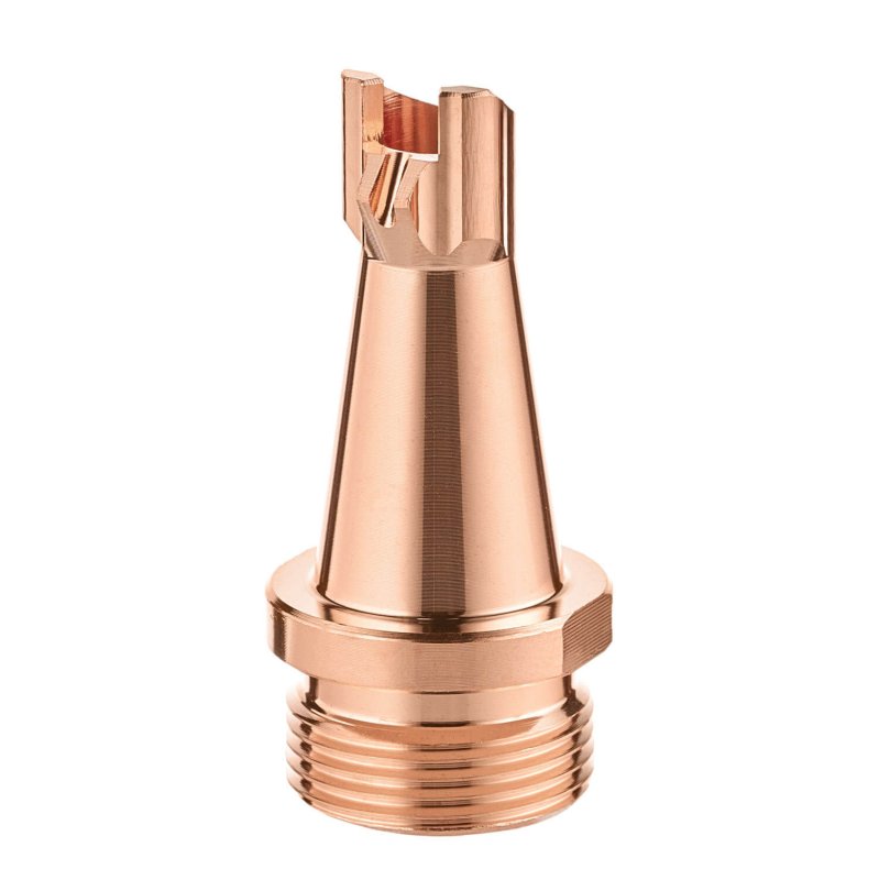 Сопло ES-12 используется для лазерной сварки внешних углов и стыковых швов. Сопло используется при сварке металла средних толщин, где необходимо заполнение сварочного шва присадочным материалом. При сварке соплом ES-12 LSR0003 используется проволока диаметром от 0,8 до 1,2 мм. Сопло выполнено из меди, поэтому оно обладает отличными тепловодными свойствами и может выдержать высокие температуры при длительной эксплуатации. Сопло крепится к лазерной головке при помощи резьбы M16. Высота сопла 38 мм.