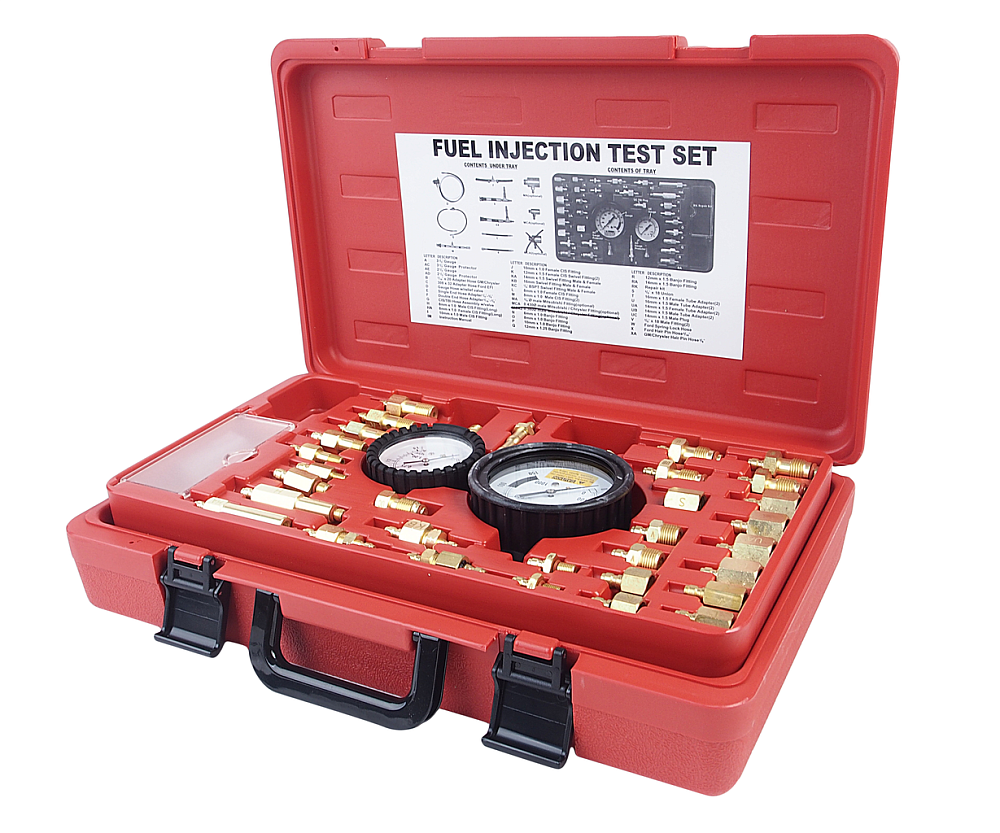 Тестер топлива предназначен для тестирования инжекторов. В комплект входят манометр, адаптеры, шланги и разнообразные разъёмы для оперативной диагностики инжекторов. Уникально спроектированный перепускной клапан позволяет сбросить давление и обеспечивает безопасное использование тестера, а также позволяет контролировать расход топлива. Не требует применения гаечных ключей и специальных адаптеров.