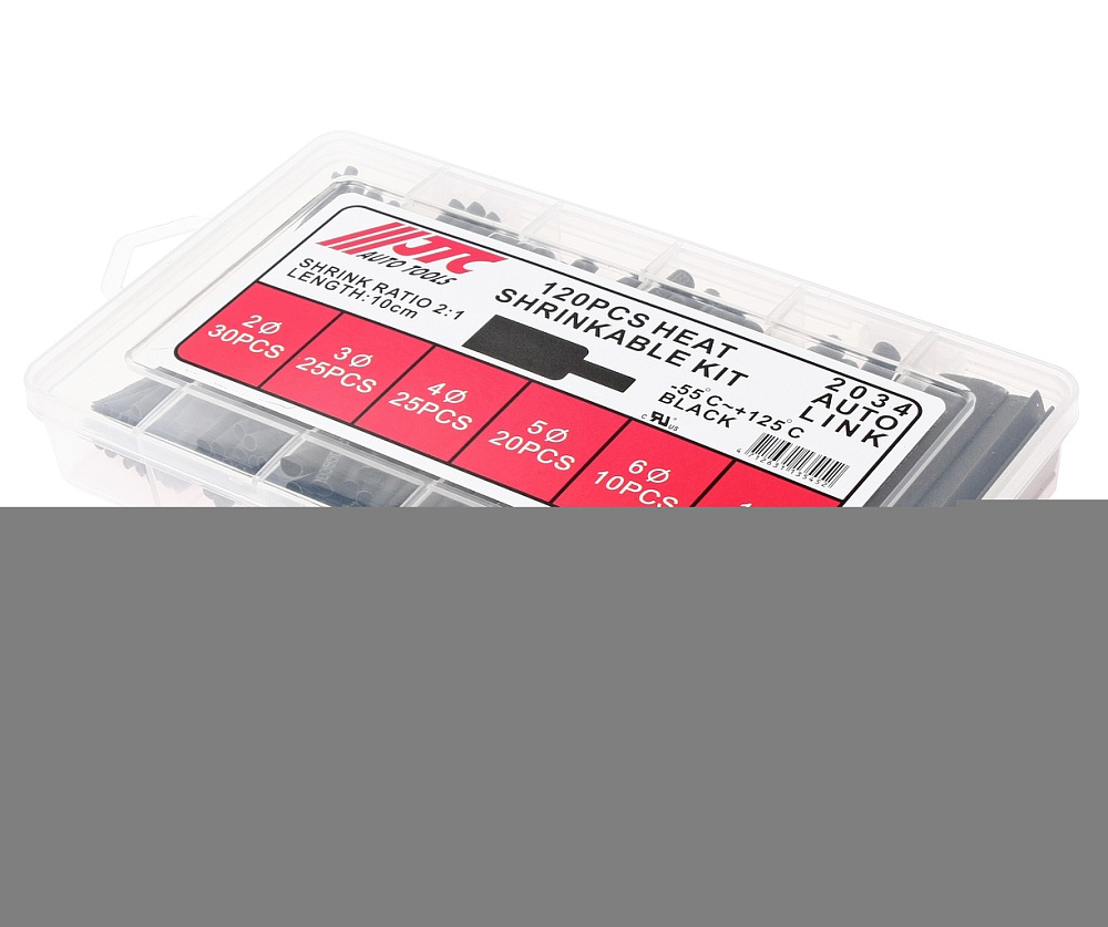 JTC-2034 Набор термоусадочных трубок, 6 типоразмеров, длина 100мм, 120шт (в боксе)