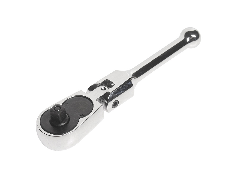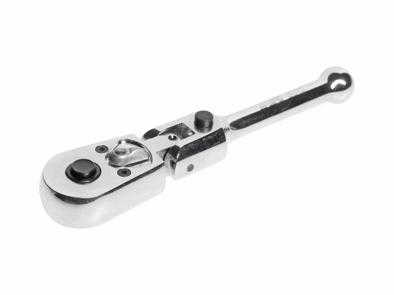 Трещотка укороченная 1/4" 45-зубцовая на шарнире с фиксацией, с металлической рукояткой, длина 124мм