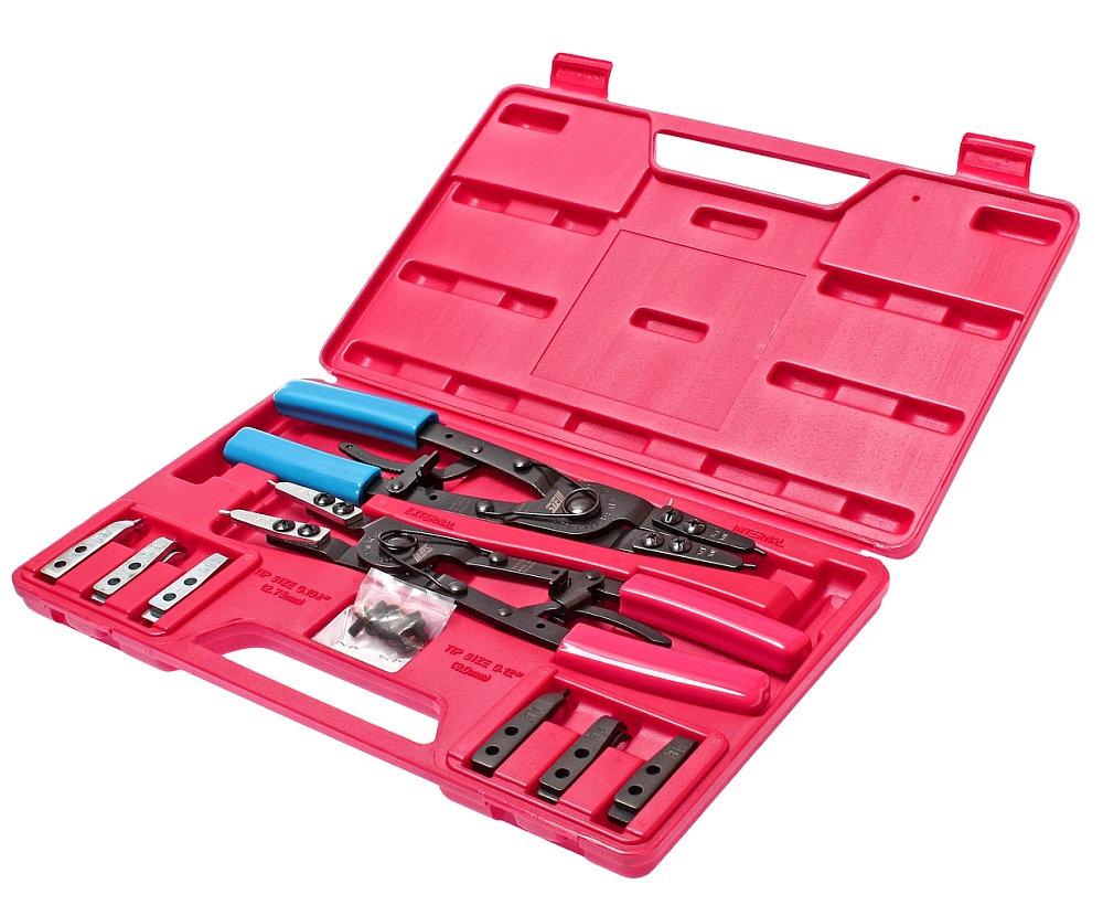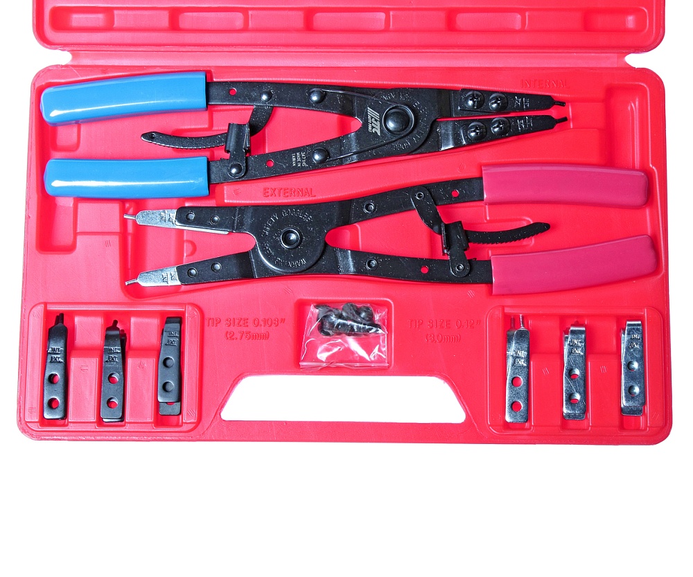 Набор щипцов для стопорных колец с наконечниками (в кейсе) 12 предметов