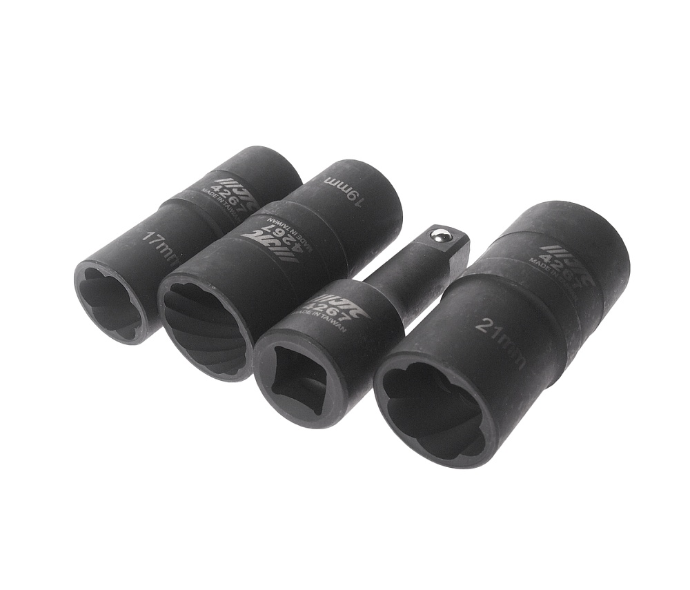 Набор головок двухсторонних для секретных болтов и гаек 17,19,21мм 4 предмета JTC /1