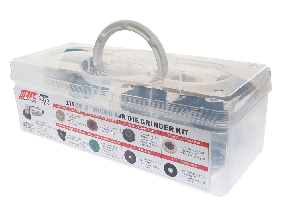JTC-5005K Болгарка пневматическая 2" с комплектом насадок 17 предметов JTC /1