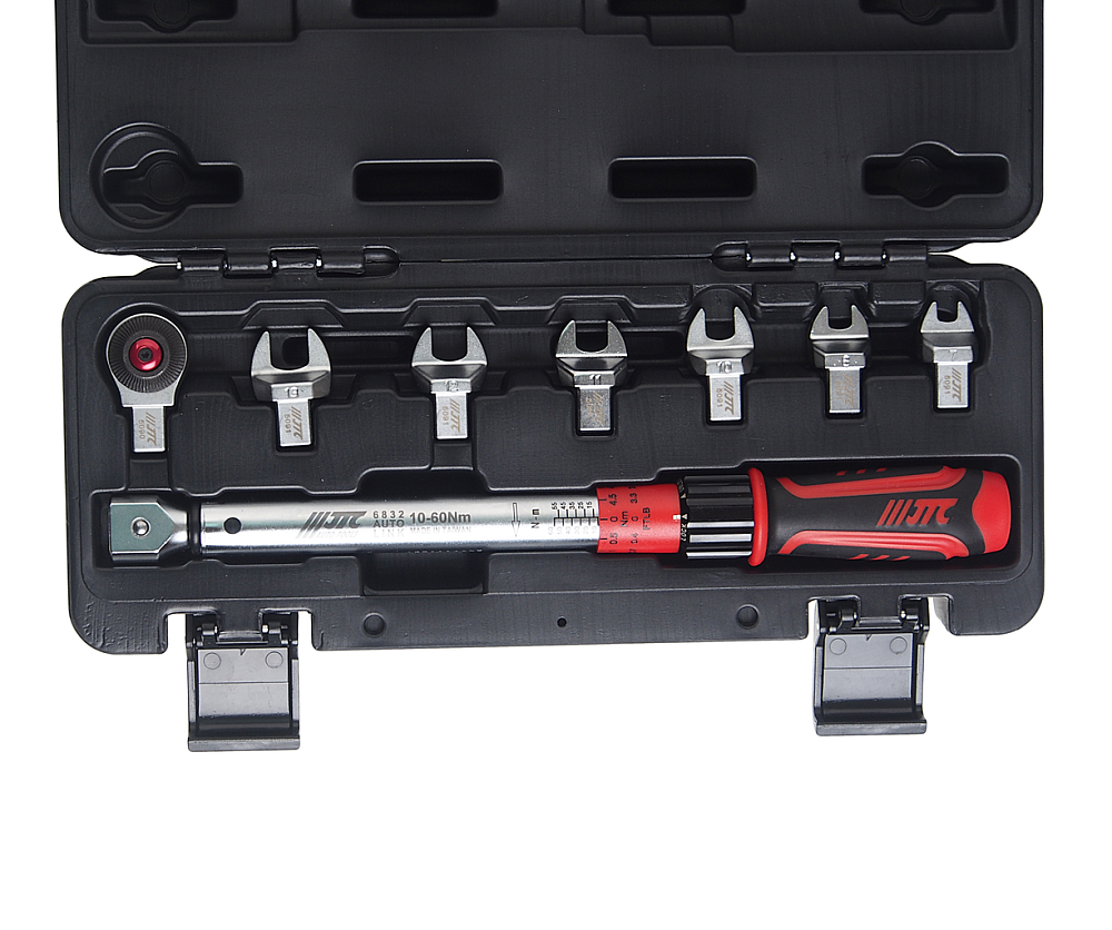 JTC-6832K Ключ динамометрический 9х12 с набором рожковых насадок 8 пр. (7-13мм), диапазон 10-60 н/м JTC купить в Самаре цена ✅ - Все для СТО