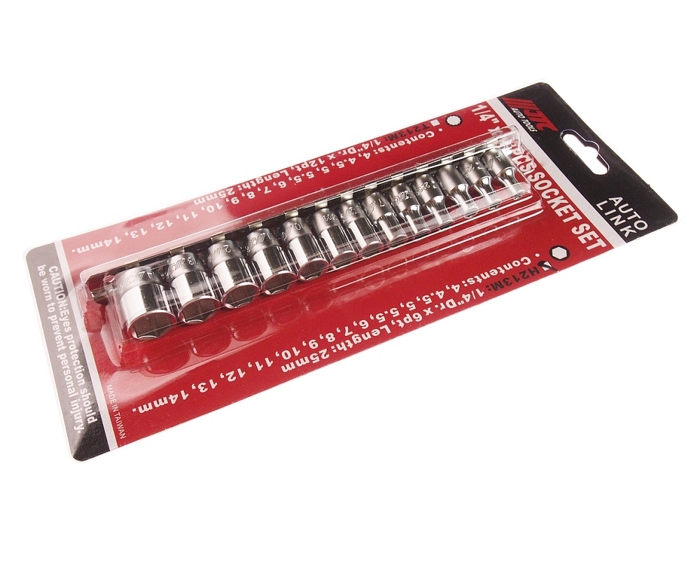JTC-H213M Набор головок торцевых 6-гранных 1/4" 4-14мм, длина 25мм 13 предметов JTC /1
