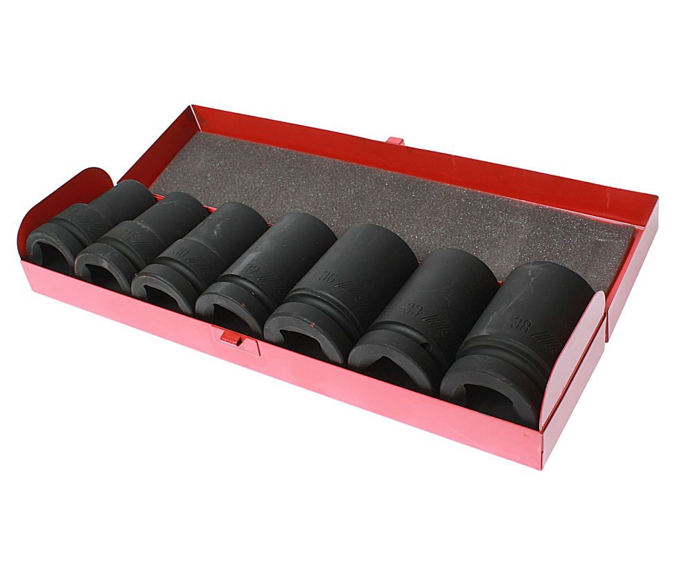 Набор головок торцевых ударных 6-гранных 1" глубоких 24-38мм (в кейсе) 7 предметов JTC