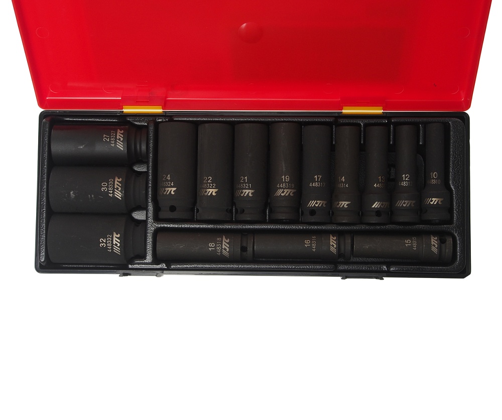 Набор головок торцевых глубоких ударных 12-гранных 1/2" 10-32мм (в кейсе) 15шт JTC /1