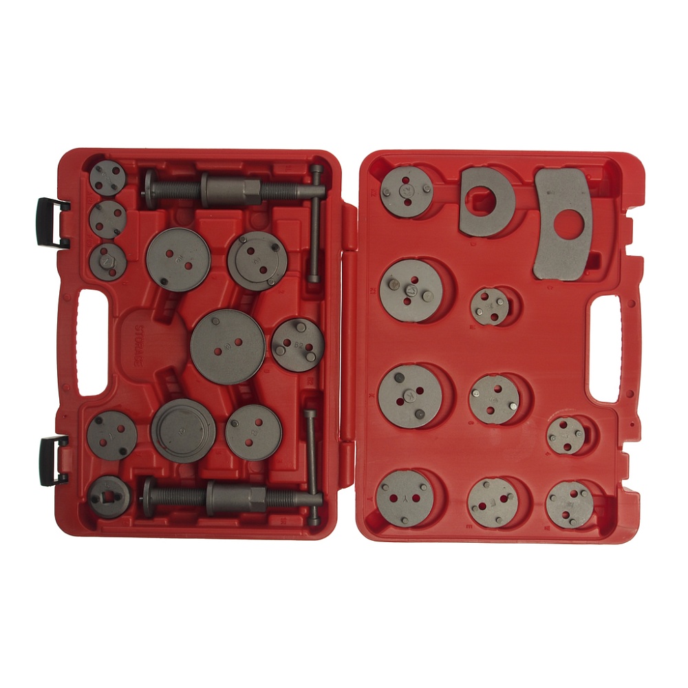 Комплект для развода поршней тормозных цилиндров дисковых тормозов применяется для упрощения работ по замене тормозных колодок. Количество предметов 12 Вес нетто    кг 1,9 Габариты в упаковке ДxШxВ    мм    330х260х54
