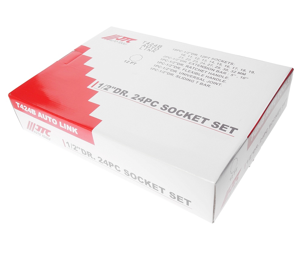 Набор головок торцевых 1/2" 12-ти гранных 10-32мм в кейсе 24 предмета JTC