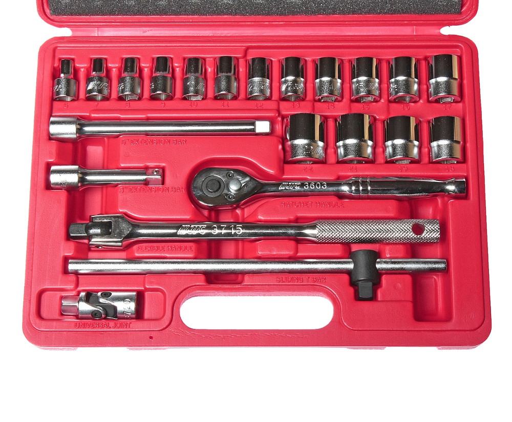 16 ед. головка 3/8": 6, 7, 8, 9, 10, 11, 12, 13, 14, 15, 16, 17, 18, 19, 21, 22 мм.
