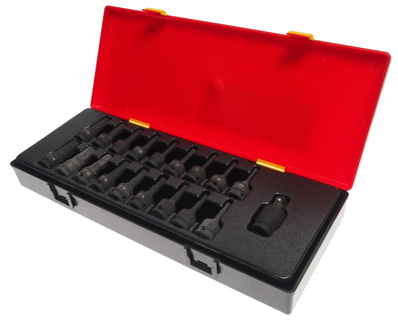 Набор головок торцевых 3/8" 6-ти гранных ударных в кейсе 19 предметов JTC