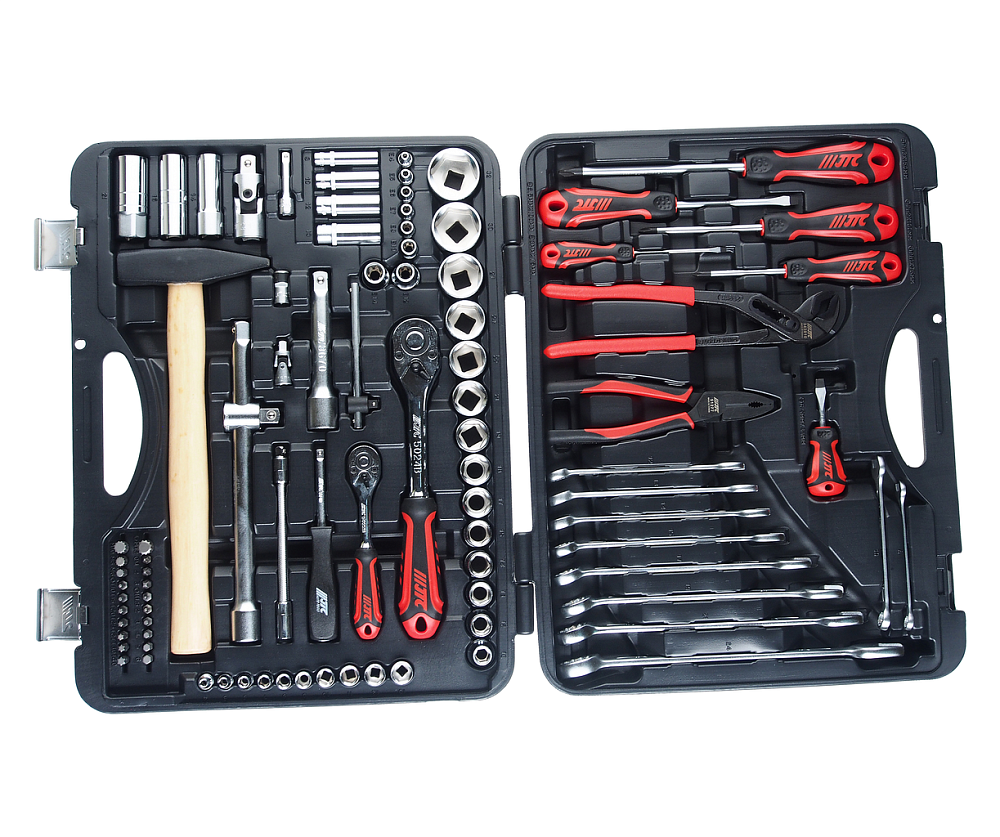 Набор 6-гранных инструментов 1/4" & 1/2" в кейсе, 90шт JTC JTC-H090C-B72 включает в себя большое количество головок и вставок, отвертки, ключи, губцевый инструмент и множество вспомогательных приспособлений, которые позволят профессиональному мастеру по обслуживанию автомобилей и прочей техники быстро и качественно производить ремонтные работы. В комплекте также предусмотрен прочный переносной кейс с отдельными ячейками под каждое изделие.
