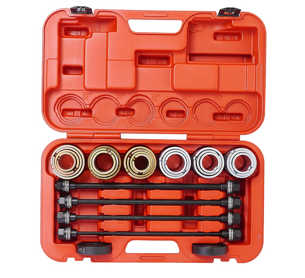 Универсальный набор используется для снятия и установки сайлентблоков и резиновых втулок.