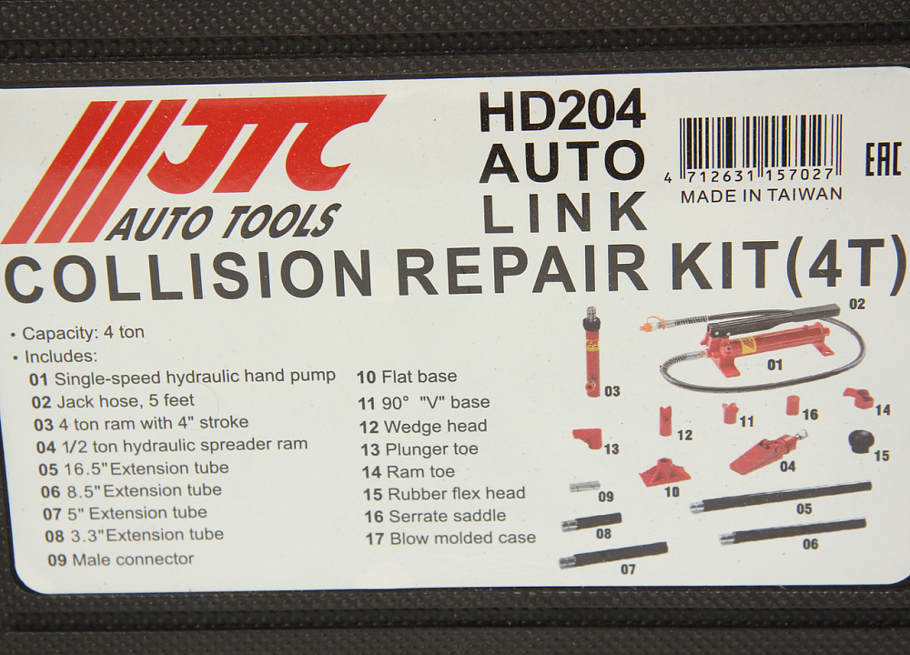 Набор инструментов для кузовных работ гидравлический, усилие 4т, 17 предметов в кейсе JTC купить в Самаре цена ✅ - Все для СТО