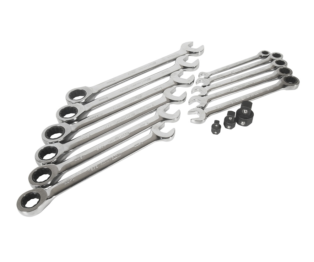 Артикулы JTC-3029-3039: ключ рожково-накидной с трещоткой: 8, 10, 11, 12, 13, 14, 15, 16, 17, 18, 19 мм. - 11 шт.