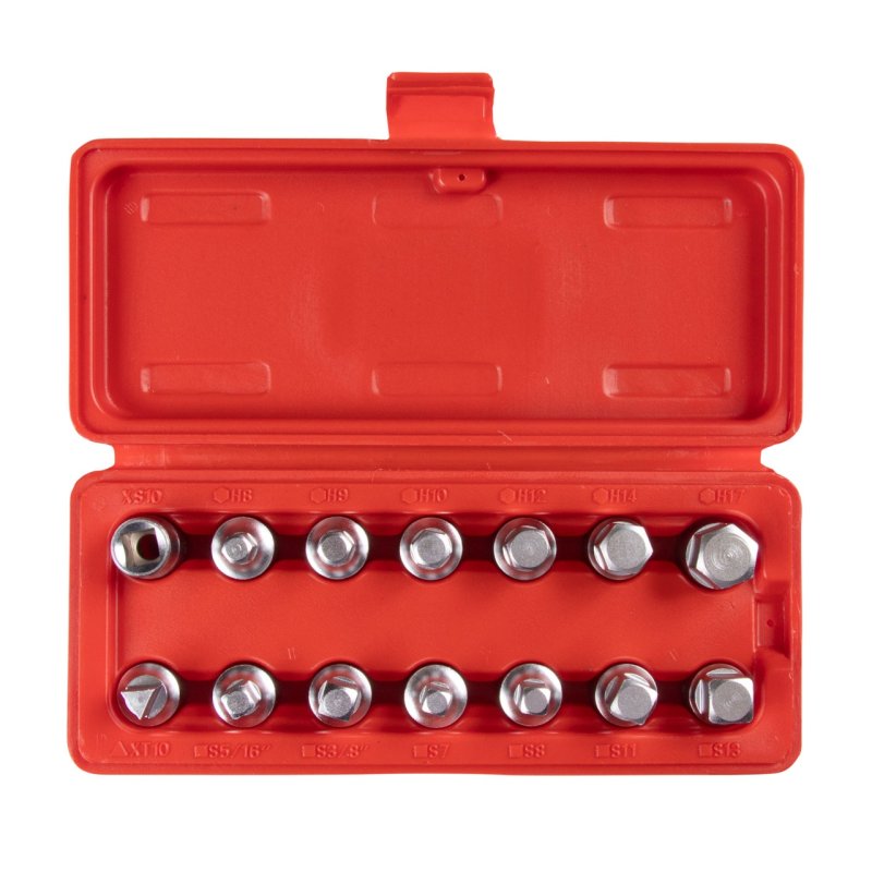 Набор насадок для пробок слива масла, кейс, 14 предметов МАСТАК 103-48014C