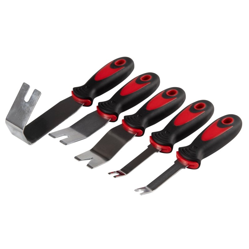 Инструменты имеют эргономичные рукояти из двухкомпонента PP+TPR, а форма съёмников позволяет проводить работы без опасения повредить приборную панель или внутреннюю обшивку авто.