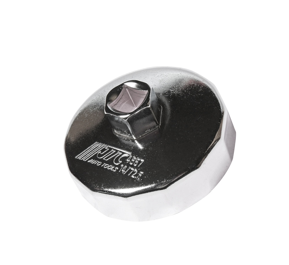 Съемник масляного фильтра ("чашка" 14-гранная) 72.5мм JTC-4667. Предназначен для снятия масляного фильтра в ходе проведения диагностических работ. Форма - 14-гранная чашка. Размеры: 14 граней/72.5 мм.  Применение: Тойота (Toyota). Инструмент: 1/2'', 21 мм.