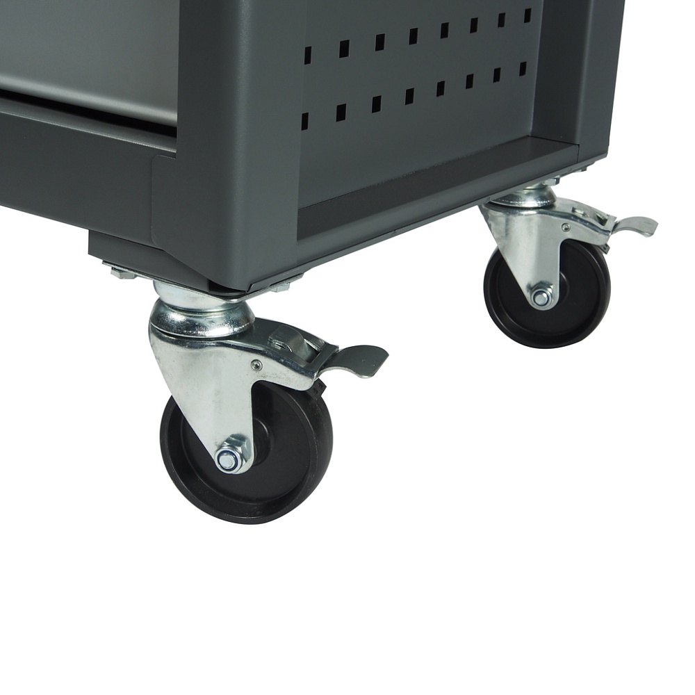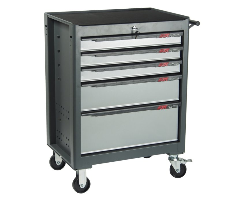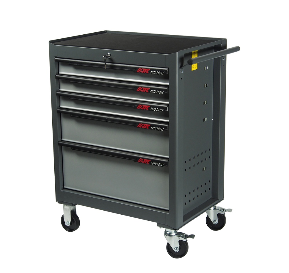 Инструментальная тележка (5 секций, серая, на колесах) JTC-S1065 включает в себя 5 разноразмерных ящиков, что позволяет эффективно распределить инструмент и обеспечивает простой поиск. Имеется 4 колеса для простоты передвижения тележки.