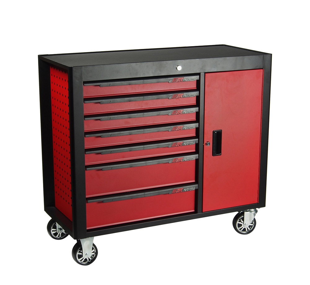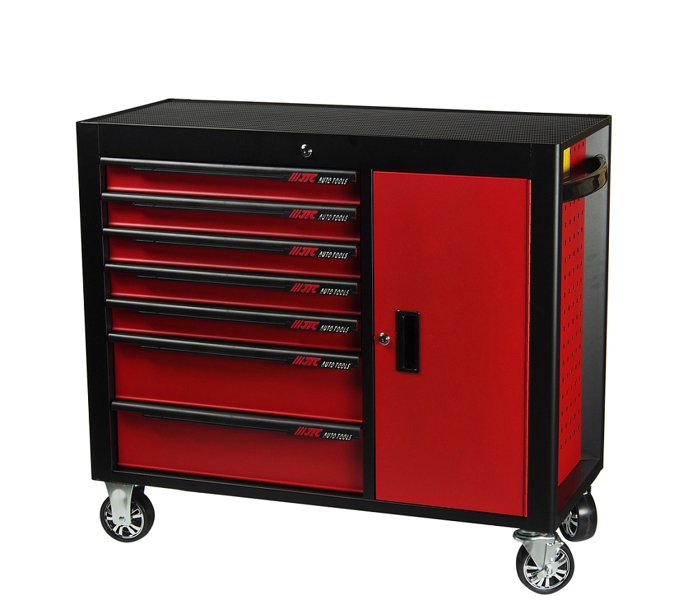 Тележка инструментальная 7 секций красная с боковым ящиком JTC