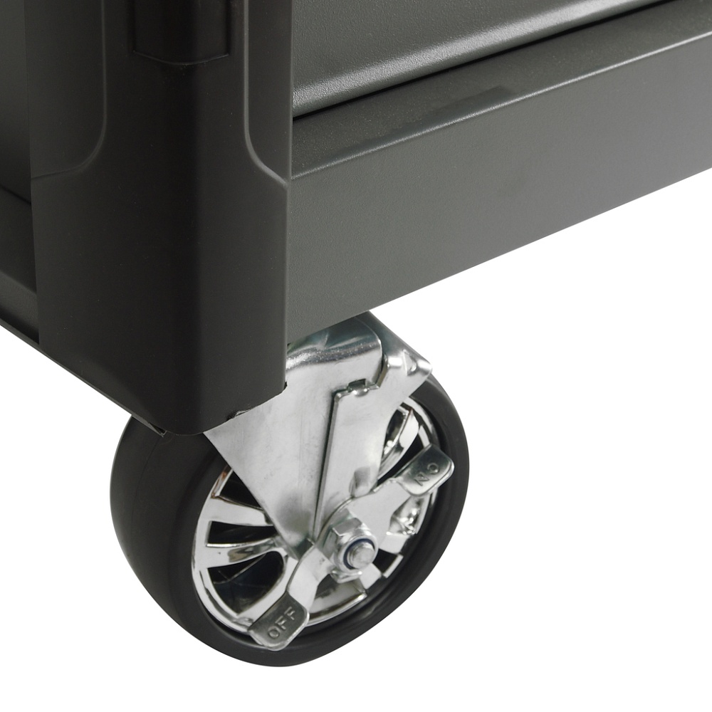 Тележка инструментальная (7 секций, серая, на колесах) JTC 5021C используется в автомастерских и обычных гаражах для систематизации хранения инструмента и небольших деталей. Преимущество тележки заключается в возможности ее простой транспортировки непосредственно к месту проведения ремонта. Транспортировочная рукоятка имеет высокую прочность и ее можно использовать даже при полной загрузке тележки. Перфорированные боковые стенки обеспечивают вентиляцию и отсутствие влаги внутри тележки