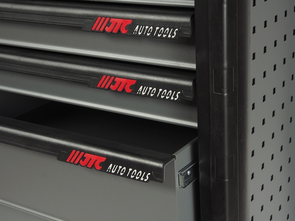 • Перфорированные боковые стенки с квадратными отверстиями предоставляют возможность разместить дополнительные аксессуары для хранения инструментов. Применяется с серией подвесных приспособлений JTC-3218.