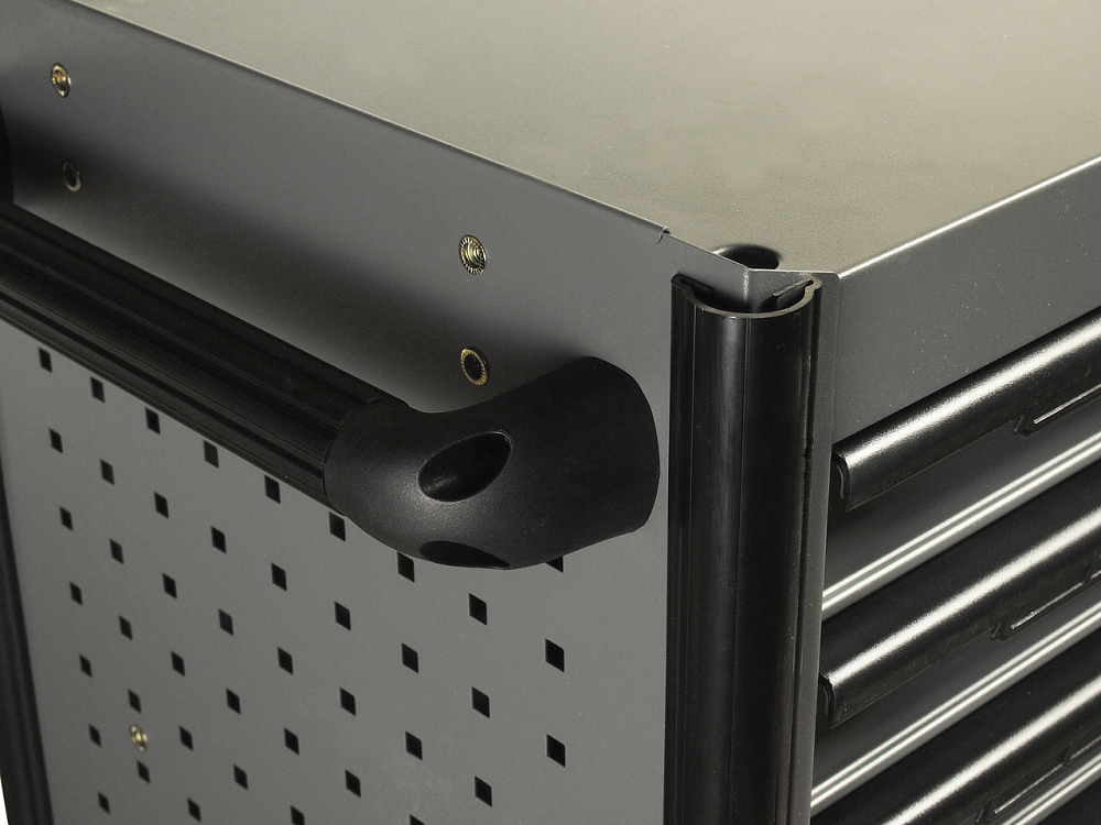 Выдвижные ящики оснащены нескользящими вкладками. В комплекте предусмотрен верхний коврик из АБС, предназначенный для удобного хранения различных мелких деталей.