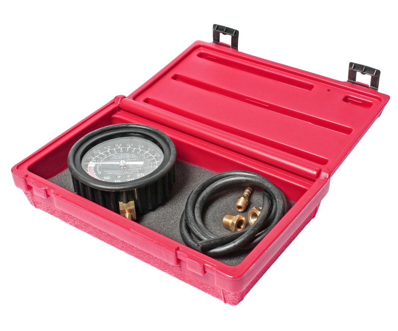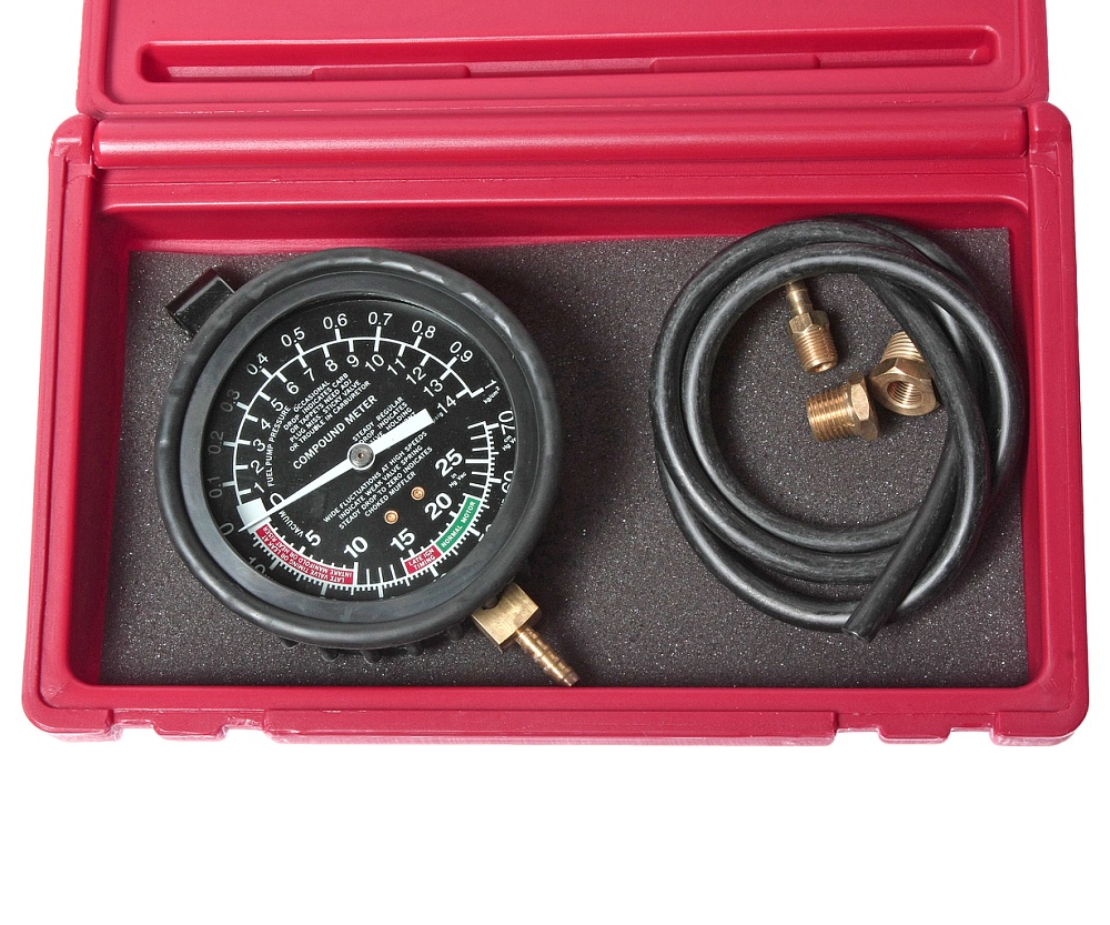 Тестер давления предназначен для выявления неисправностей топливного насоса и вакуумной системы. В комплекте длинный, гибкий и прочный резиновый шланг + манометр + 3 переходника для подключения. Большая шкала тестера диаметром 3,5" с легкочитаемой цветовой кодировкой значений.