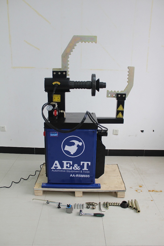 Станок AA-RSM695 для правки стальных и литых колесных дисков размером от 10" до 26". Оборудован гидравлической системой опрессовки диска и укомплектован адаптерами всевозможных форм и размеров для любых дисков. Гидравлическая система с электрическим приводом действительно удобна в использовании. Станок не имеет товарной группы. Мощная гидравлическая система, большой набор самых разных адаптеров, удобное крепление диска - вы точно не разочаруетесь в вашем новом станке для правки дисков.