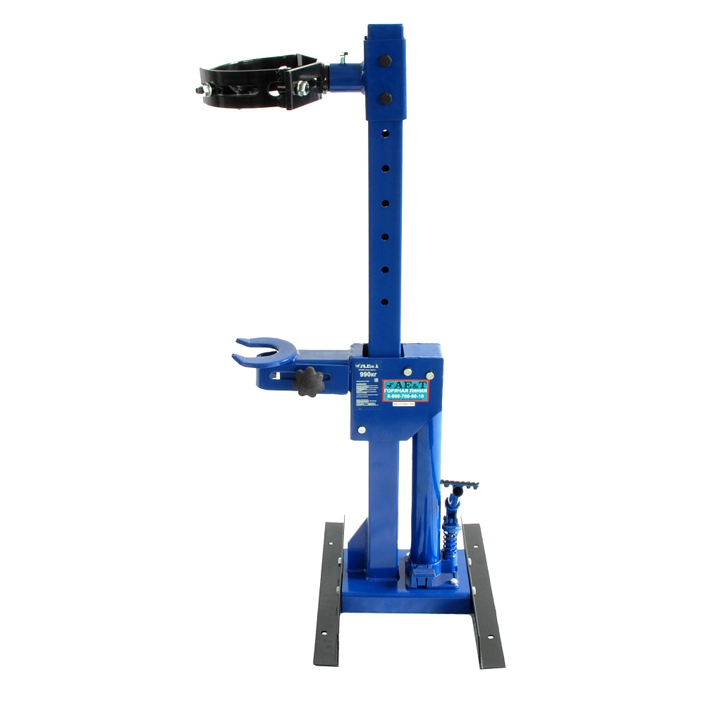 Данная модель подойдет для стягивания пружин легковых и грузовых автомобилей. Ножной привод сделан максимально удобным для большинства операторов. Верхний упор можно двигать на стойке, чтобы подстроить устройство под конкретную операцию. Широкие мощные опоры увеличивают устойчивость устройства.