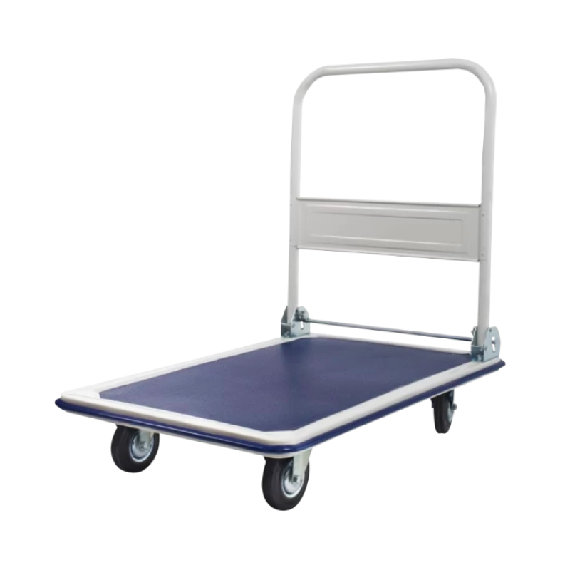 Для снижения вероятности получения травм и удобства прохождения в узких проходах края платформы имеют закругленную форму. При необходимости ручку тележки можно сложить, благодаря чему при хранении и транспортировке тележка занимает мало места.