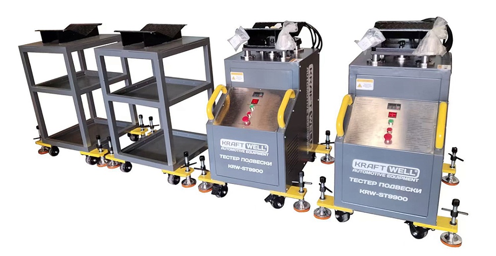 Тестер подвески KRAFTWELL, модель KRW-ST9900 позволяет имитировать движение автомобиля по различным неровностям с возможностью регулировки частоты колебаний подвески до 260 колебаний в минуту.