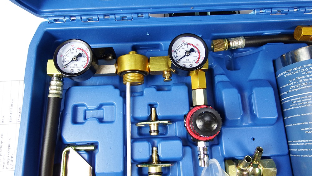 Представляет собой одноконтурный прибор для подачи специальной жидкости в топливную систему автомобиля. Для работы прибора необходимо подать сжатый воздух под давлением от внешнего компрессора.