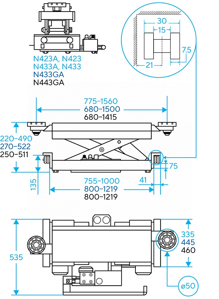 • Регулируемый диапазон длины платформы: 760-1500 мм
