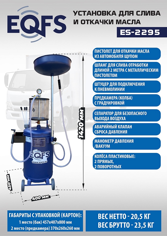 ES-2295 Установка для слива отработанного масла купить в Самаре цена ✅ - Все для СТО