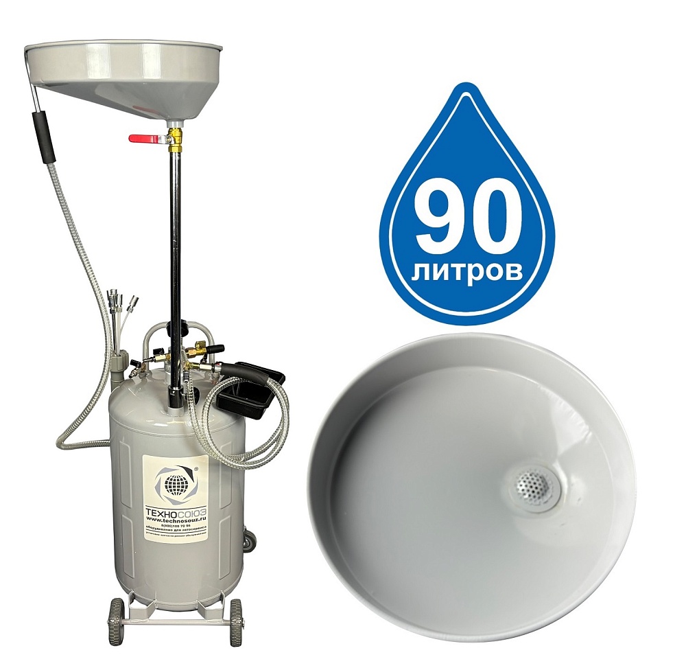 Маслосборник помещает 90 литров отработанного масла или техжидкости. Бак 80л и чаша (воронка) 10л.