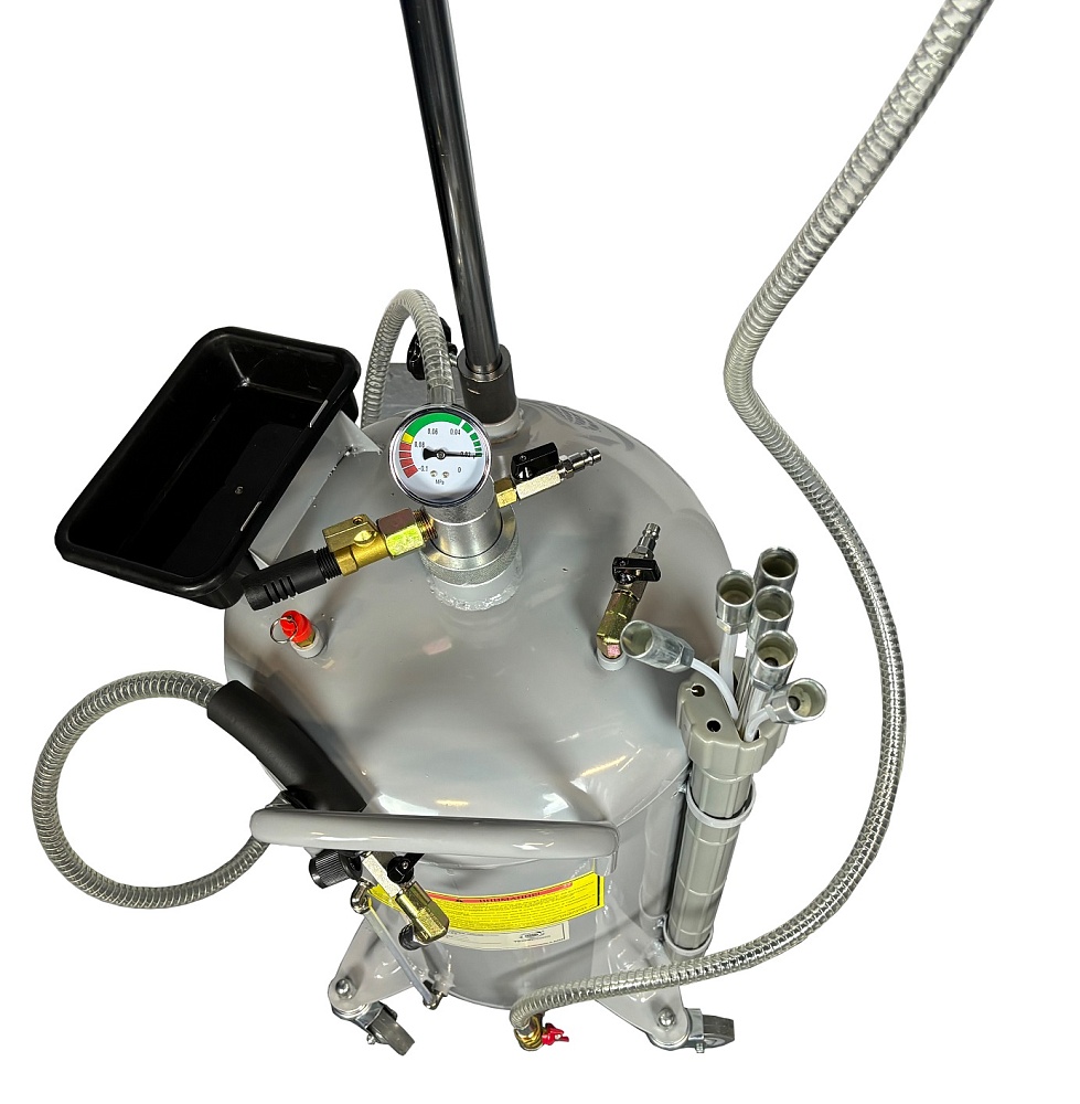 Для быстрого слива (самотеком) и откачки щупами масла и техжидкости из ДВС, КПП и мостов всех авто. В комплекте: Сливная чаша с сеткой для улавливания мелких деталей. Щупы с металлическими наконечниками 6 шт. Лоток для сливной пробки. Металлические пистолеты с обрезиненной ручкой для откачки масла. Цифровая индикация уровня разрежения в установке. Быстросъёмный штуцер для пневмолинии. Сепаратор для выхода воздуха. Вмещает 90 л. = Бак 80л + сливная воронка 10л.