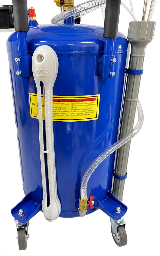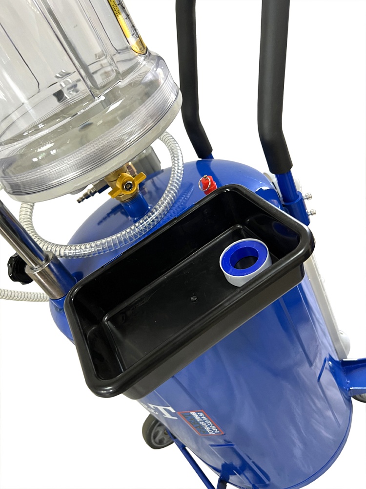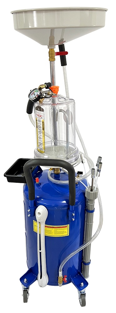 Установка для слива отработанного масла для быстрого слива (самотеком) и откачки щупами масла и техжидкости из ДВС, КПП и дифференциалов всех авто. В комплекте: Сливная чаша с сеткой для улавливания мелких деталей. Щупы с металлическими наконечниками 6 шт. Лоток для сливной пробки. Металлические пистолеты с обрезиненной ручкой для откачки масла. Цифровая индикация уровня разрежения в установке. Быстросъёмный штуцер для пневмолинии. Сепаратор для выхода воздуха. Вмещает 90 л. = Бак 80л + сливная воронка 10л.