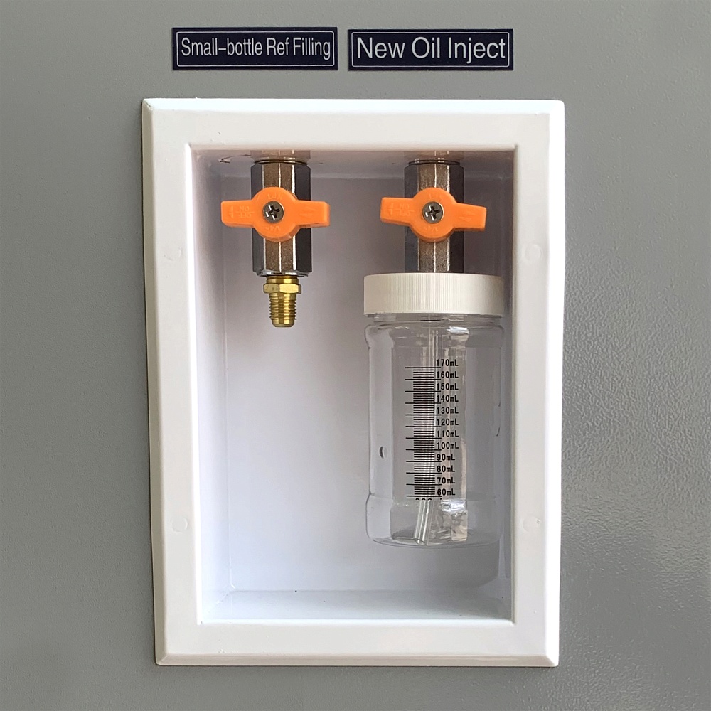 Установка подключается специальными шлангами (в комплекте) к системе кондиционирования машины. С помощью встроенного вакуумного насоса фреон откачивается во внутреннюю емкость в установке, проходя через фильтр. После этого происходит вакуумирование системы автомобиля и проверка ее герметичности. Затем этот вакуум заполняется очищенным фреоном с добавлением нового до необходимого объема.